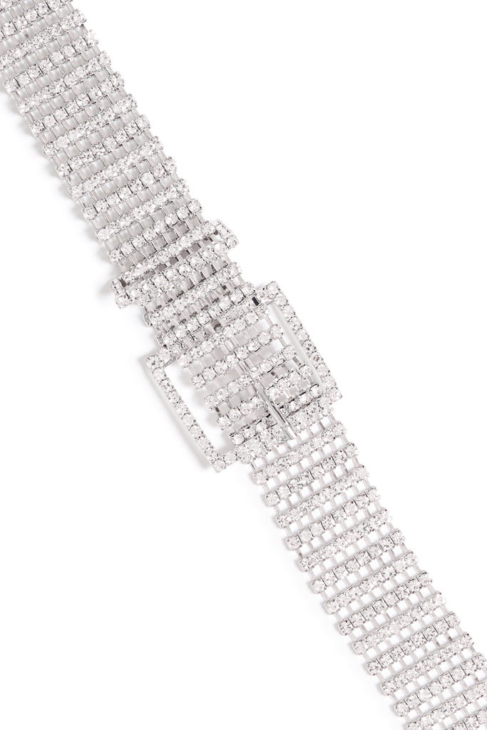 - Silfurlitaður málmur með glitrandi steinum