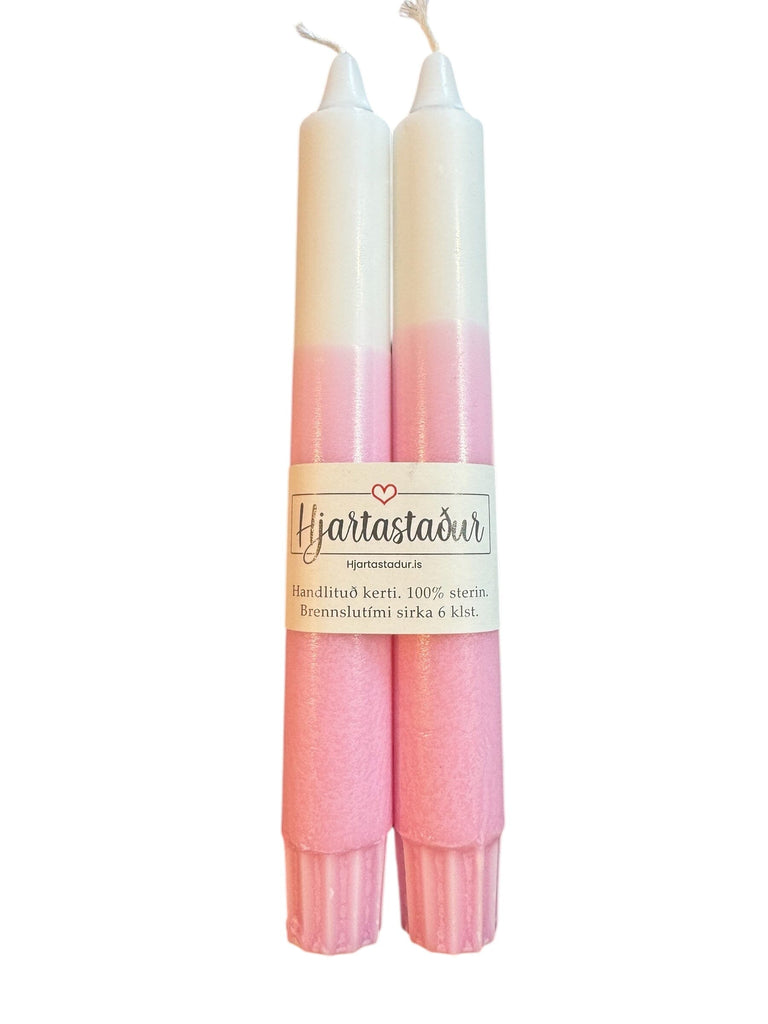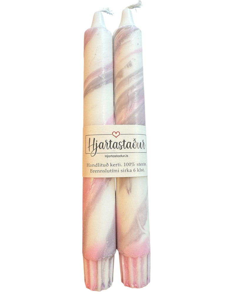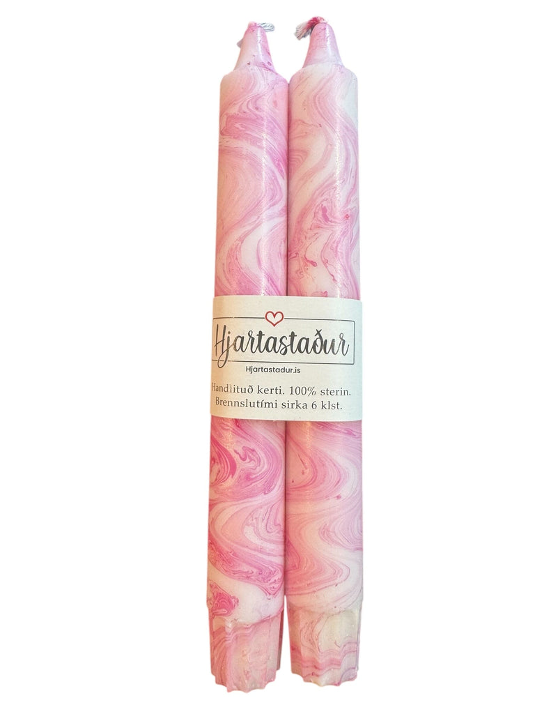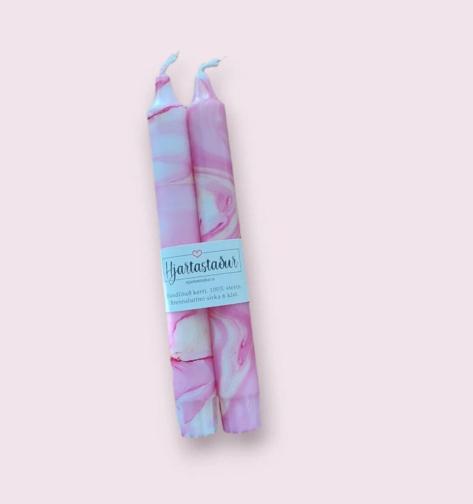 Handlituð kerti frá Hjartastað. Kertin eru úr 100% sterin